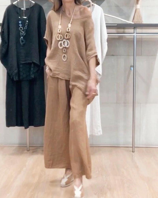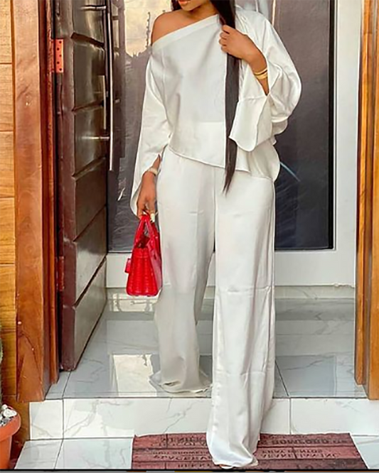 Casual Solid Color Off-the-shoulder Two-piece Set