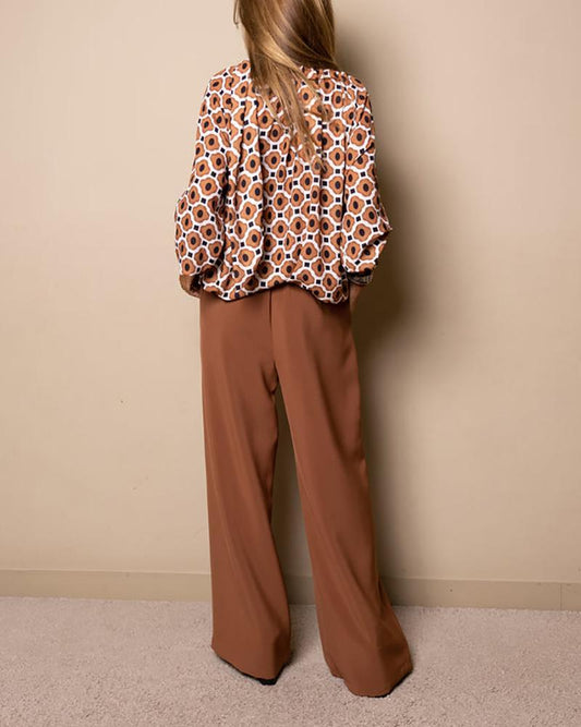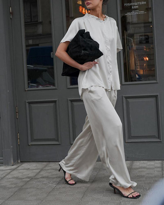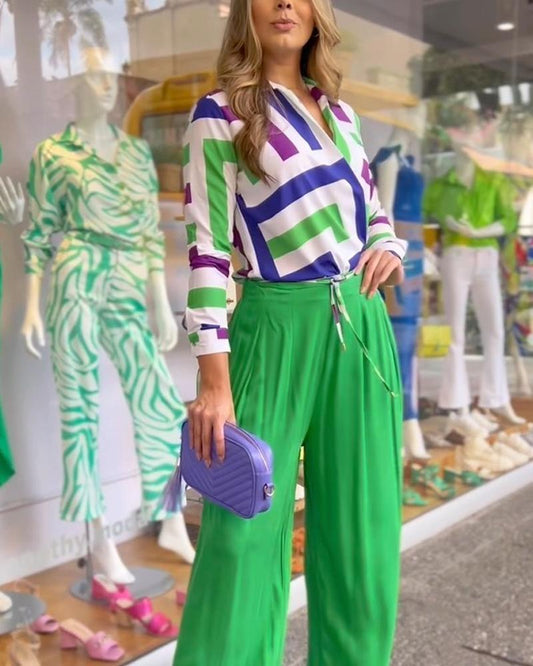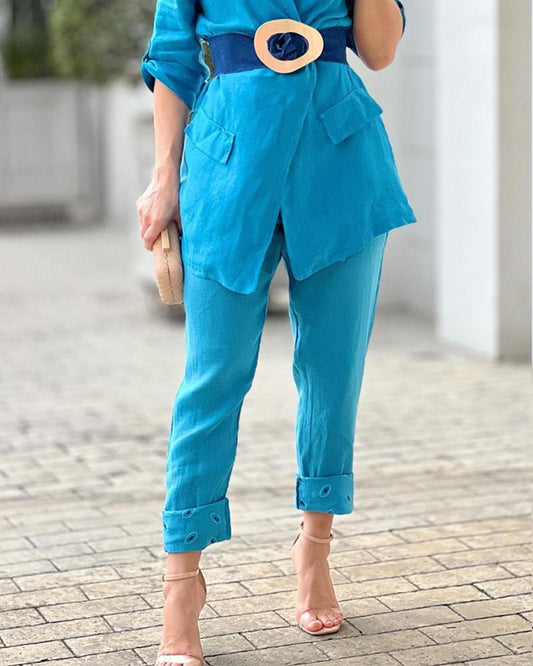 Casual Solid Lapel Shirt and Pants Two Piece Set