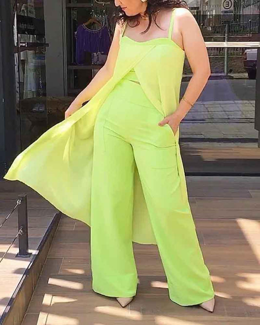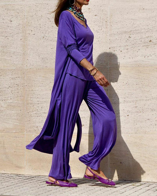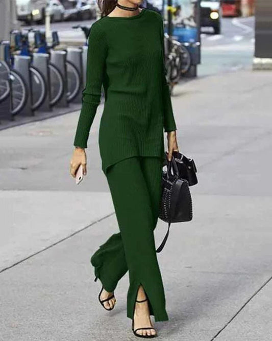 Casual Simple Solid Color Knit Slit Two-piece Set