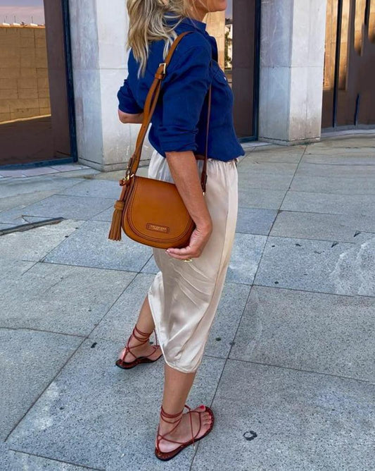 Casual Solid Color Shirt & Split Skirt Two Piece Set