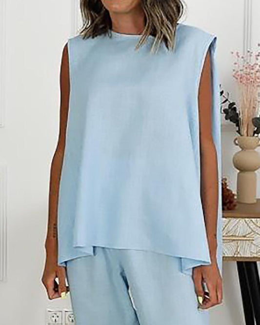 Casual Solid Color Short Sleeve Top and Pants Two Piece Sets