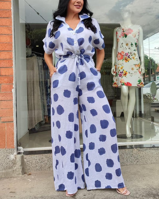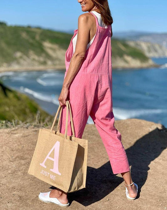 Cotton Hemp Pop Style Waist Length Jumpsuit