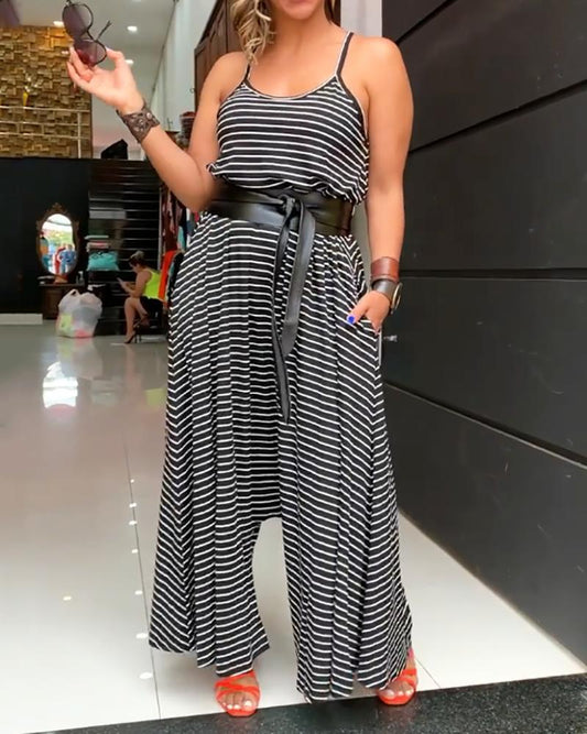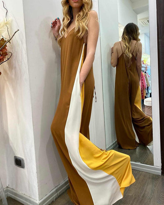 Sleeveless Side Seam Colorblock Casual Jumpsuit