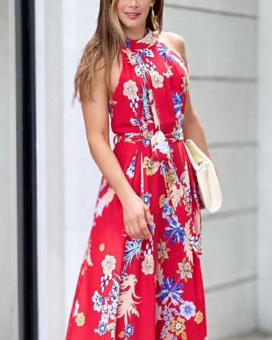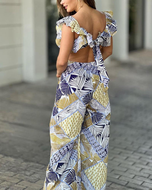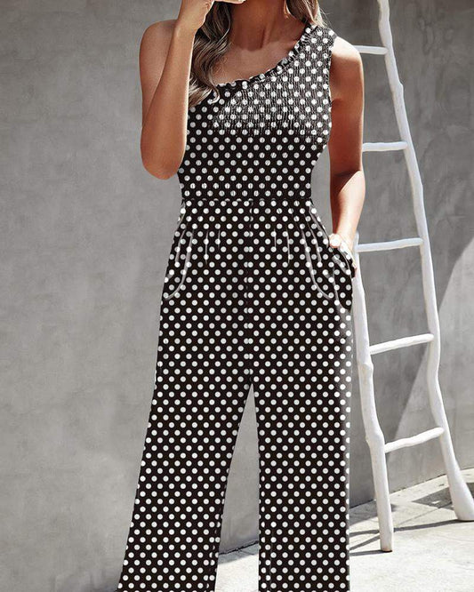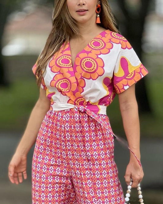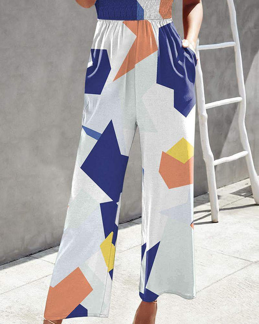 Geometric Print V-Neck Sleeveless Jumpsuit